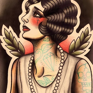 Melancholic Flapper Tattoo Art Print Etsy